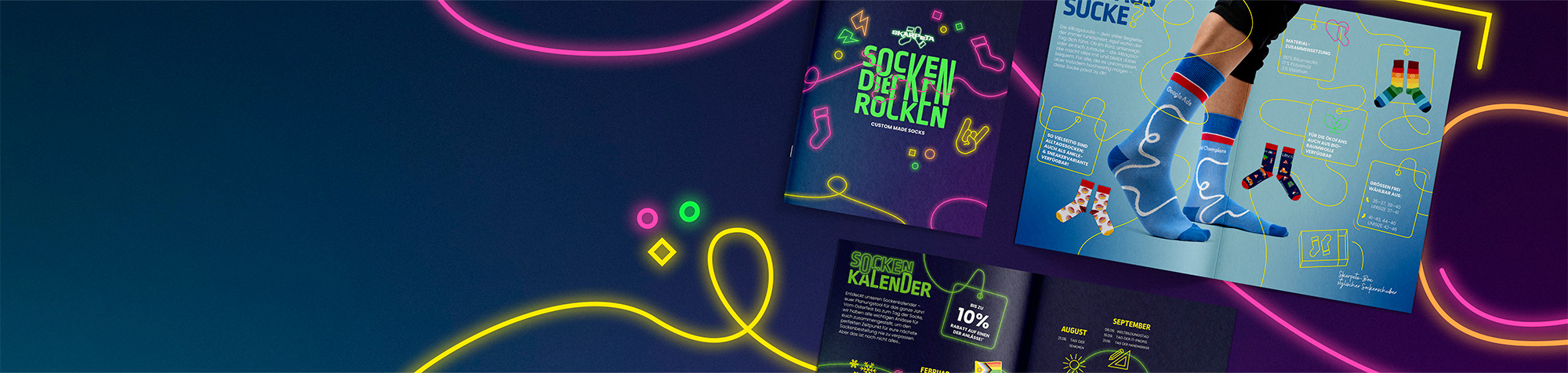 Kreativ, flexibel und mit einem Kopf voller Ideen. Wir machen Unmögliches möglich. Wo andere aufgeben, legen wir erst richtig für euch los! Socken sind unsere Leidenschaft – und wir machen keine Kompromisse! Vom ersten Faden bis zum fertigen Design setzen wir auf Qualität, Kreativität und Kundennähe.